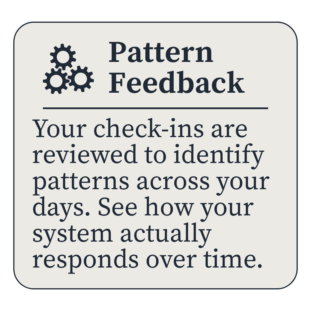 Through daily check-ins and ongoing pattern feedback, you start to see how you actually respond.